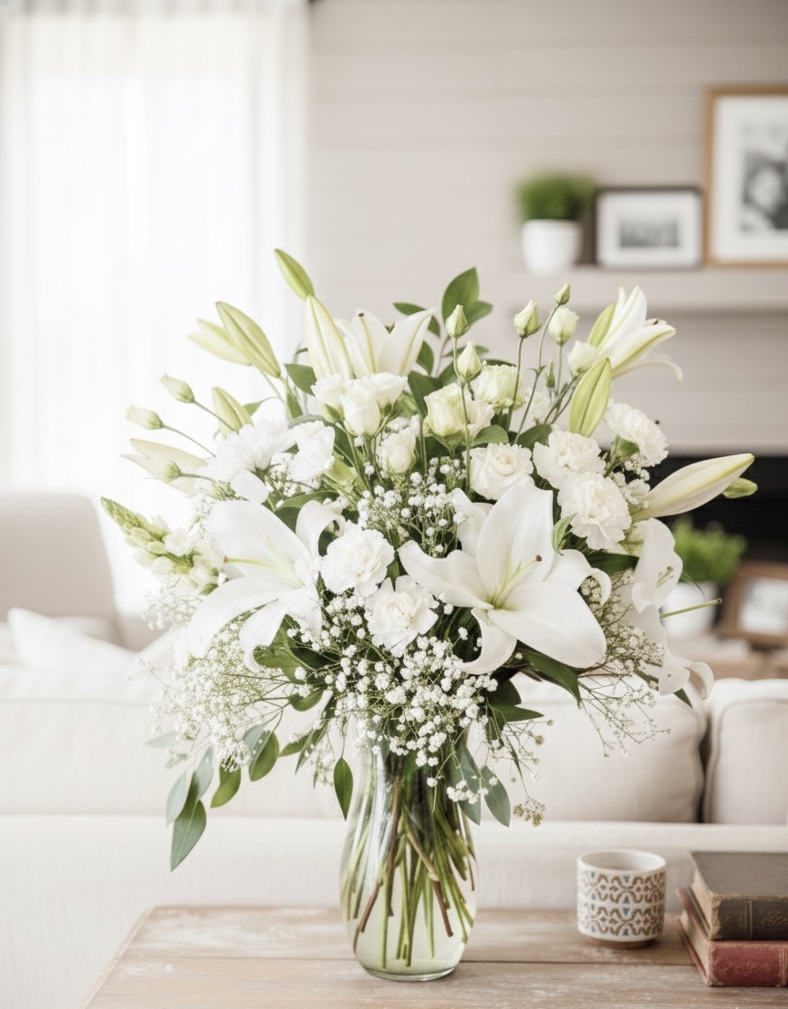 Named for the purity and timeless beauty of white, the Bianca is a grand statement of sophisticated elegance. This luxurious arrangement is perfect for expressing deepest sympathies, commemorating significant milestones, or simply making a breathtaking impression.